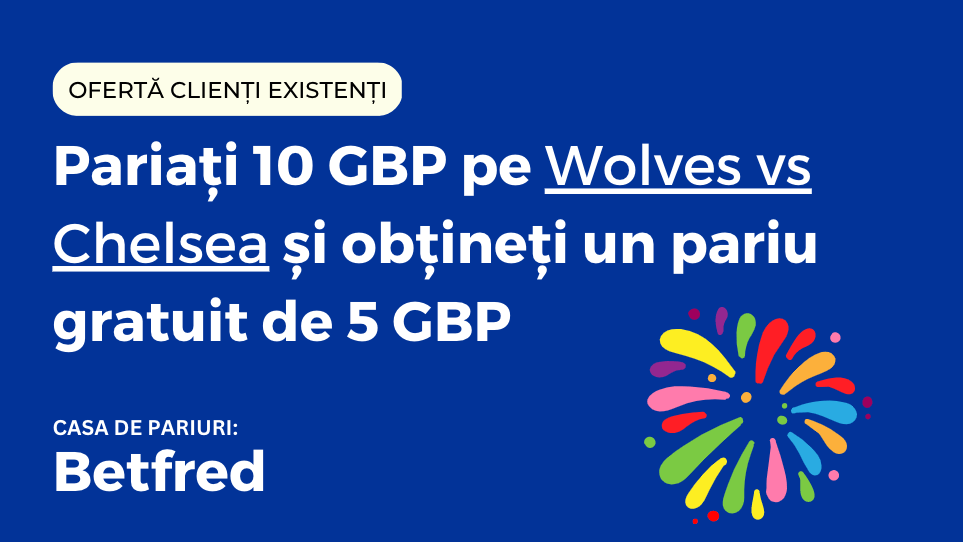 Astfel, această ofertă nu vă va dezamăgi. Indiferent de rezultatul pariului dvs. calificator pe meciul Wolves vs Chelsea, Betfred vă va oferi un pariu gratuit în valoare de 5 GBP.